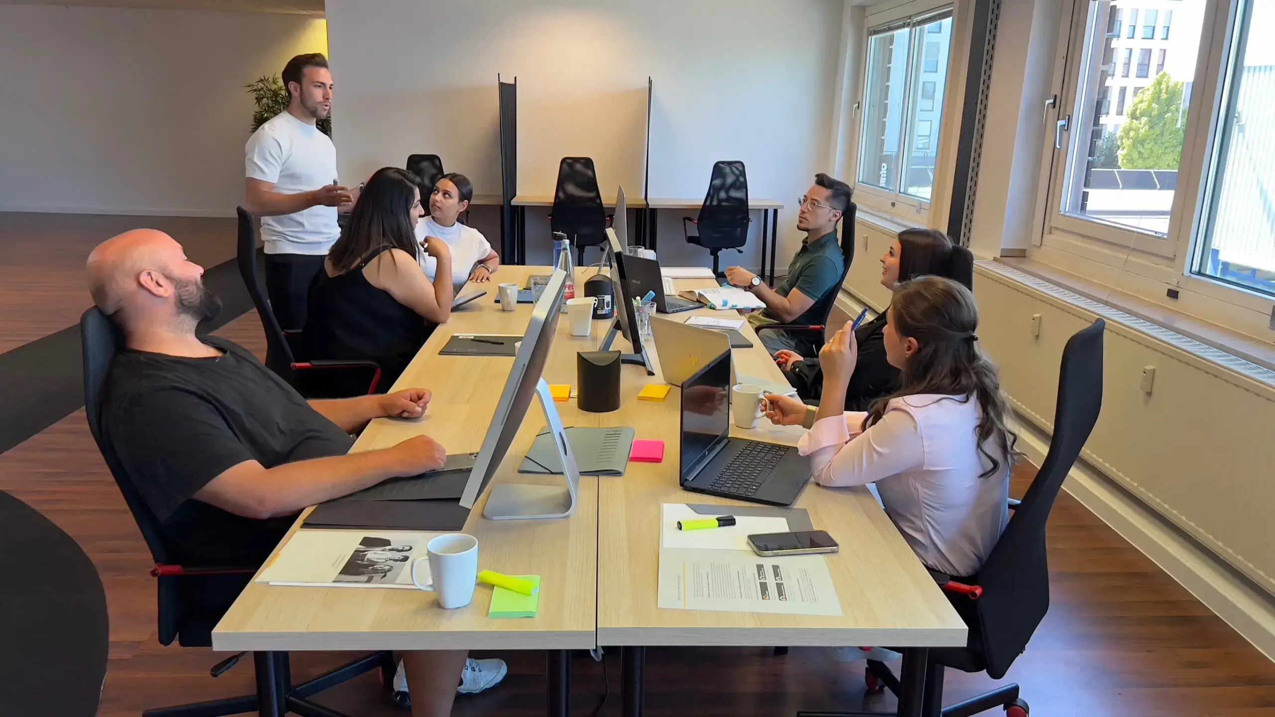 Coworking 56 Köln is a vibrant coworking space located in Köln-Süd. It offers a flexible workspace with 24/7 access, fully equipped kitchen, high-speed internet, and cleaning services. The space is designed to foster networking and collaboration among its members, providing a platform for visionaries and creative minds to exchange ideas and create synergies. With no minimum contract period and all-inclusive membership fees, Coworking 56 Köln is the perfect place for freelancers, startups, and businesses looking for a flexible and inspiring work environment.