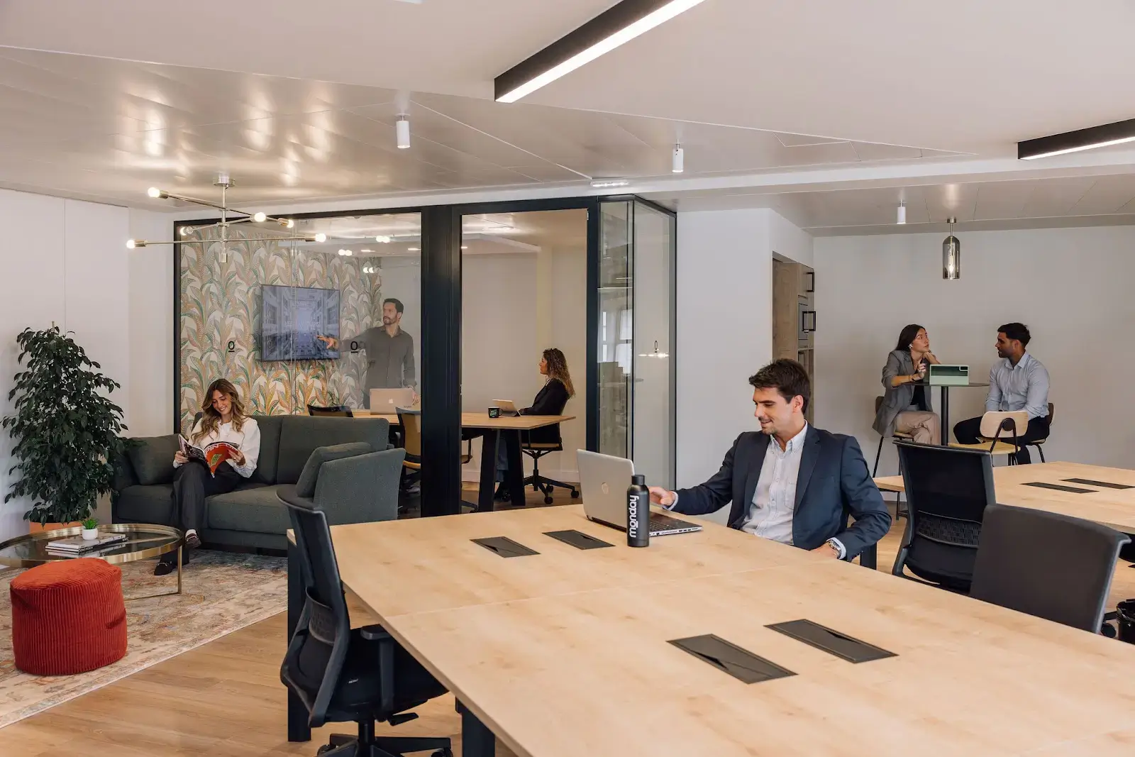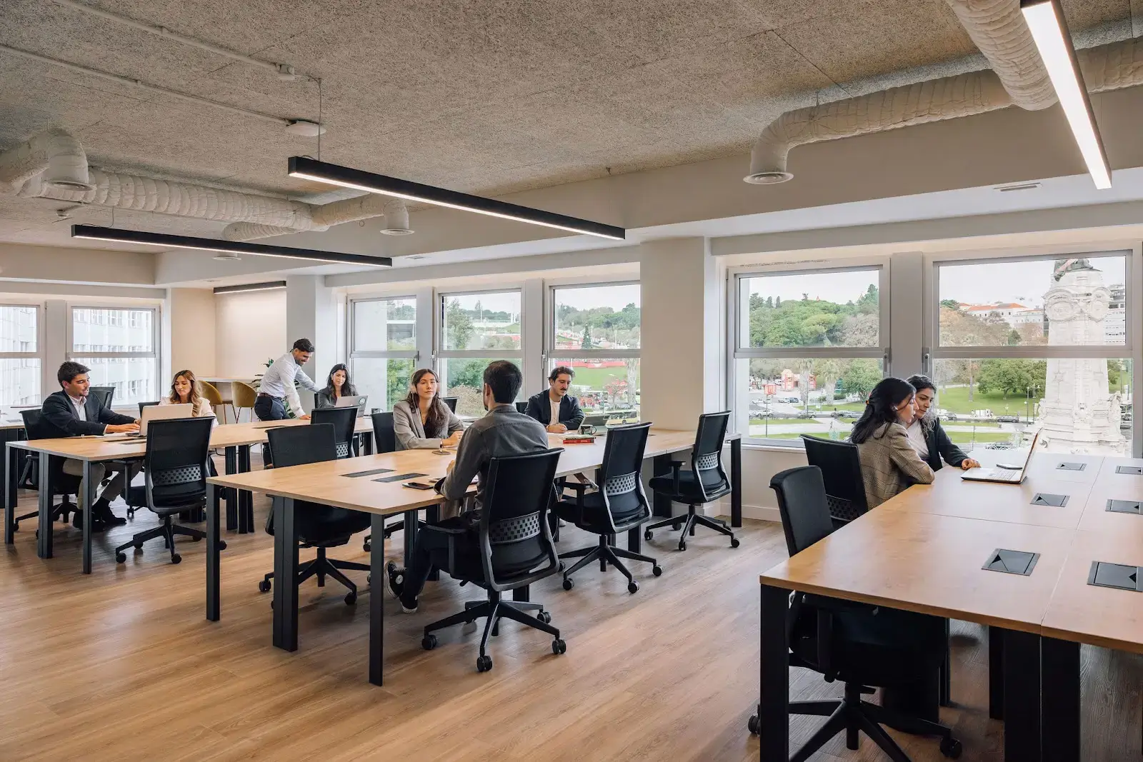 Situated in the prestigious business district of Lisbon, Monday Marquês de Pombal offers an ideal ecosystem for both freelancers and established companies seeking a collaborative and professional environment. This space enjoys a privileged location with stunning views of Eduardo VII Park. With a fully equipped gym, flexible hot desks, and private office spaces, it caters to dynamic professionals and teams. The venue’s modern design and ergonomic furnishings create a perfect blend of comfort and efficiency, promoting productivity and well-being at work.