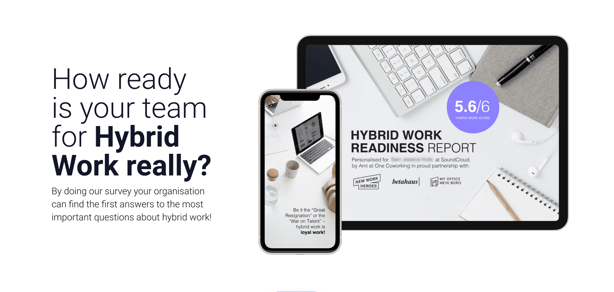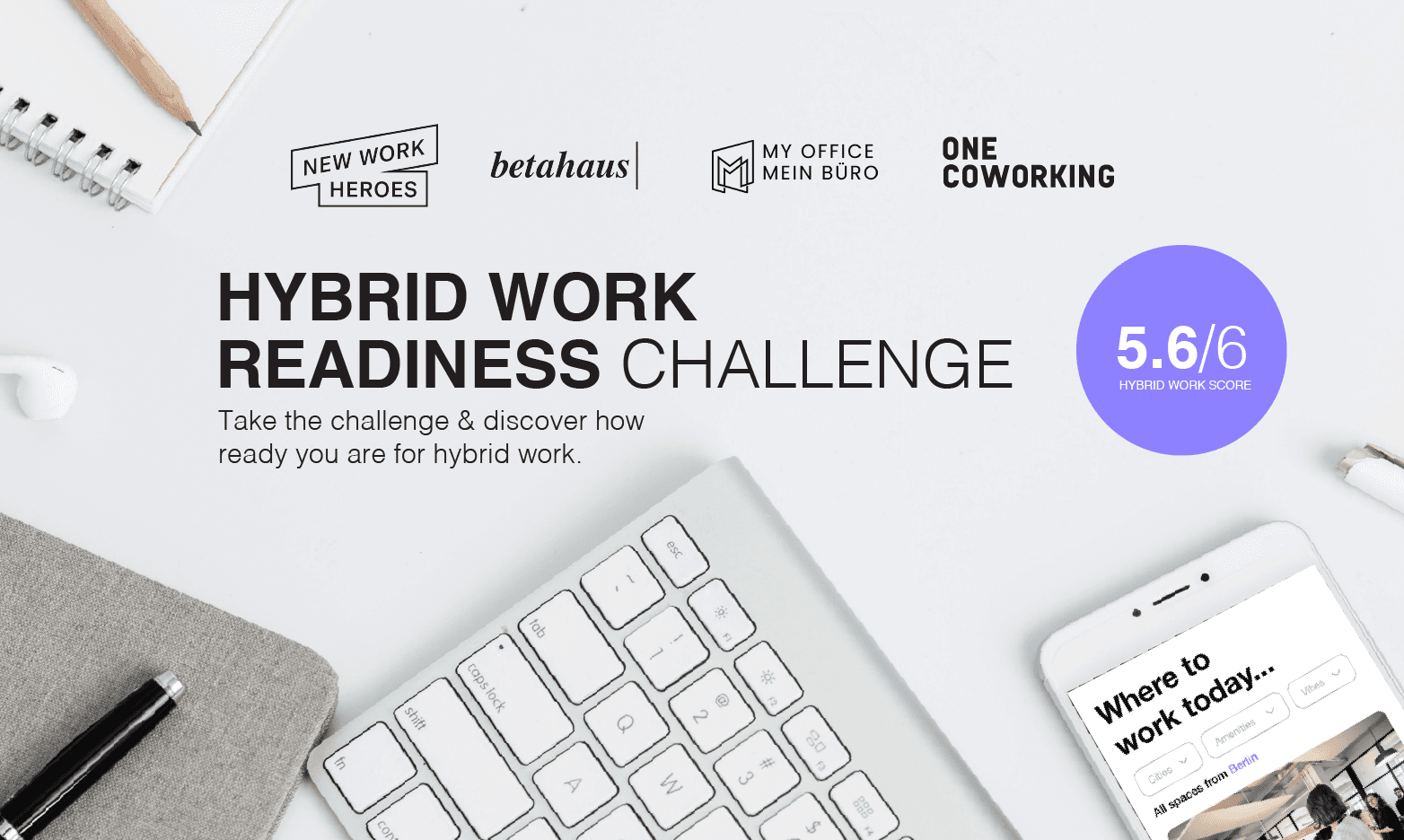 We have teamed with industry leading specialists to help your organisation get ready hybrid work. Take the challenge now and get your score and report in under one minute! We're helping people understand what hybrid work is and where organisations are in their journey in building their hybrid work model. Find out how well you are prepared for the future of work. Discover your score and find out what's next for your company.