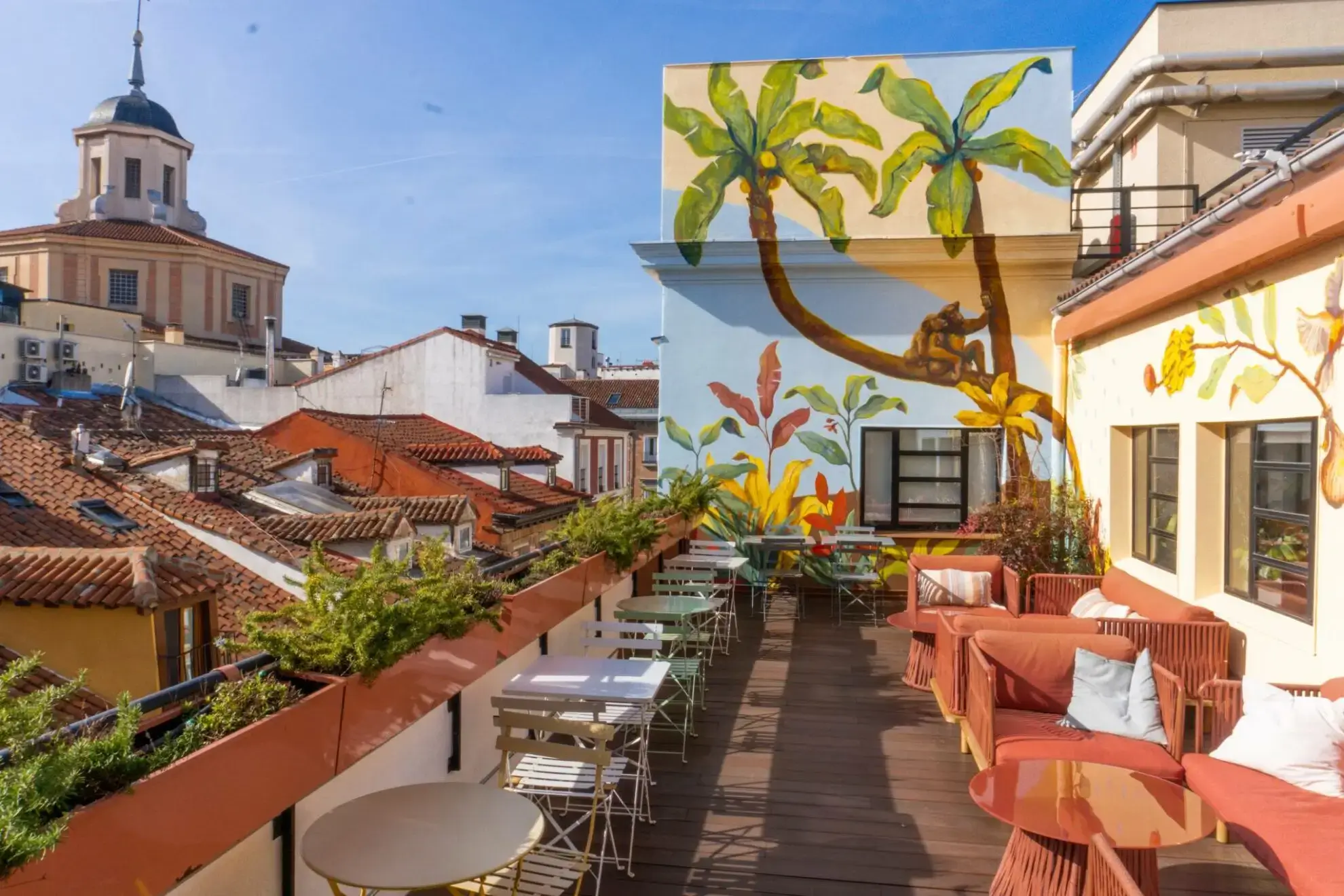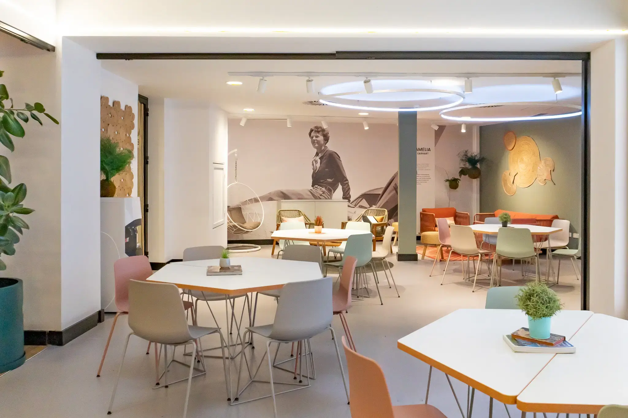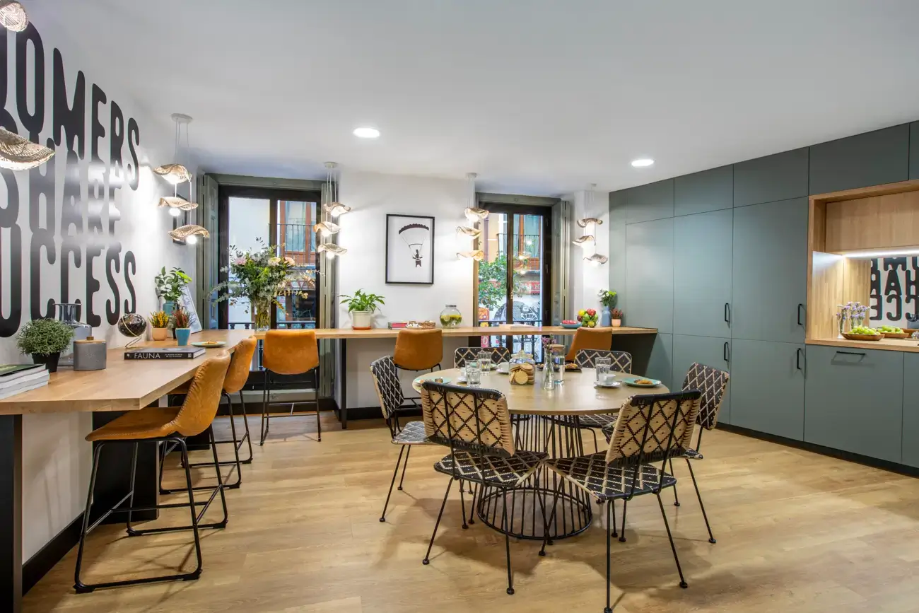 Coworking LOOM Huertas, located centrally in Madrid's historic Barrio de las Letras, is an ideal workspace for dynamic teams and professionals seeking a vibrant environment with all the modern amenities. Situated on Calle de las Huertas, this coworking space offers flexible workstations from €275 per month, all nestled in a unique building spread over five floors. Distinguished by its tranquil terrace, where one can enjoy a coffee break or hold unique business meetings amidst the stunning backdrop of Madrid's skyline, this workspace caters to both flexibility and function. Pet-friendly policies and secure bicycle parking emphasize its commitment to providing a holistic work-life balance. Close proximity to major cultural sites like the Museo del Prado enhances its appeal, while the exclusive LOOM Experience program offers users a rich blend of training, cultural, and networking events.
