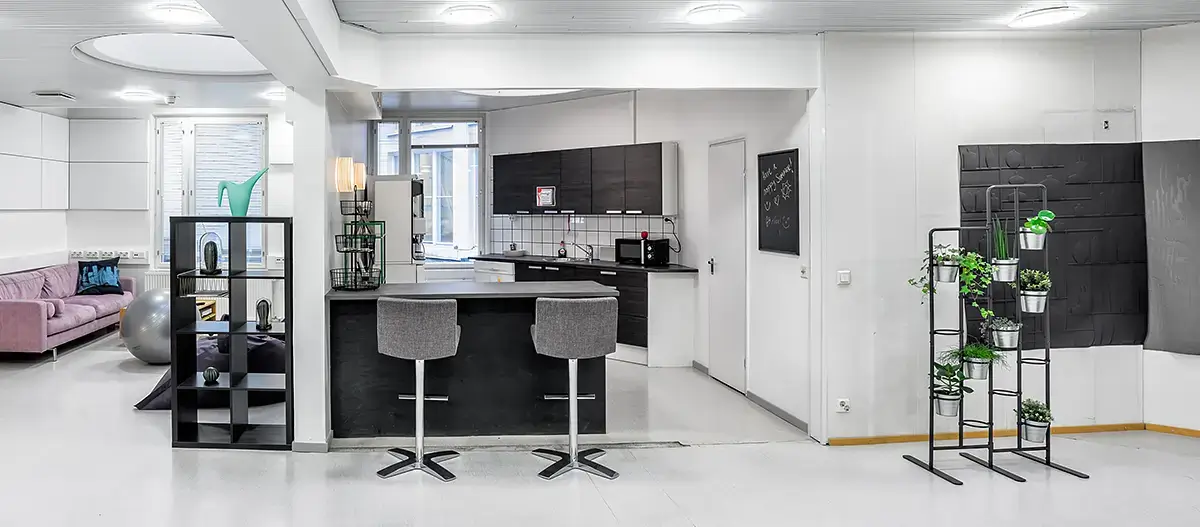 Located alongside Kamppi Shopping Center, VillageWorks Sähkötalo is ideally positioned for those seeking both convenience and vibrancy. The area boasts a rich selection of cafes and restaurants, offering everything from casual dining to gourmet experiences. For those relying on public transport, the nearby Kamppi Metro Station and tram stops provide seamless connectivity across Helsinki. The shopping center itself provides a plethora of retail outlets, entertainment venues, and essential services, ensuring every need is catered to within a short walking distance. Additionally, the proximity to parks and recreational spaces offers opportunities for relaxation or casual outdoor meetings, enhancing the appeal of this bustling urban location for professionals and creatives alike.